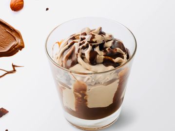 Smooth hazelnut gelato swirled with rich chocolate sauce presented in a flute glass